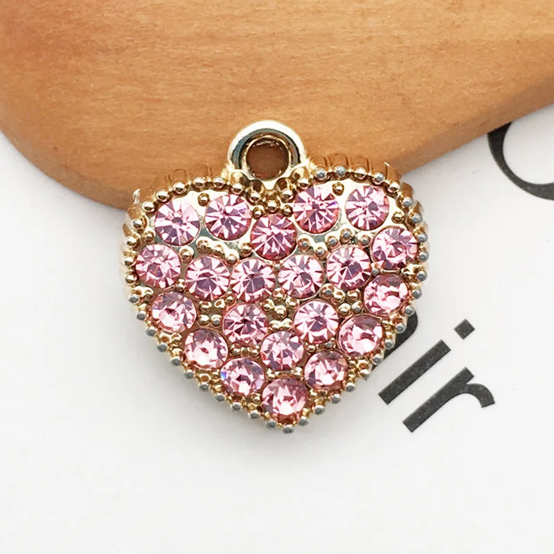 10pcs Full Rhinestone Heart Pendants Jewelry Accessories Colorful Love Charms Bracelets Earring DIY Fits Handmade Craft YZ046