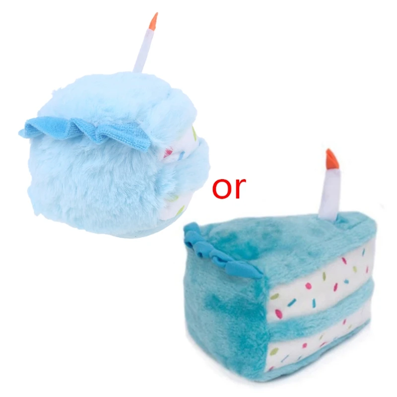 D7YB Pet Dog Cat Cute Plush Birthday Cake Doll Bite-resistant Play Squeaky Chew Toy