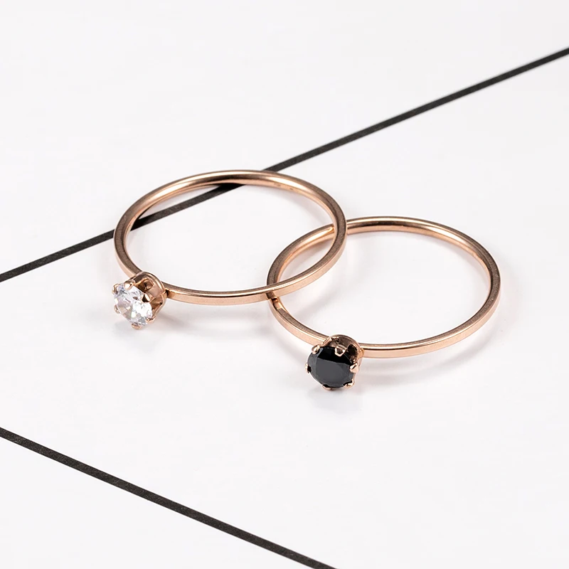KNOCK Single Fine Ring Titanium Steel Material Inlaid Transparent Black Fashion Trendy Ring for Women Jewelry Gift
